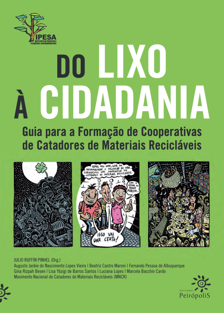 Criado pelo instituto IPESA em parceria com o MNCR, trata-se de um guia para a formação de cooperativas de catadores de materiais recicláveis. Toca nas questões do trabalho informal e organização, planejamento e construção participativa, as capacitações, educação para emancipação social e outros temas relacionados a educação e autonomia no contexto dos catadores e da reciclagem.